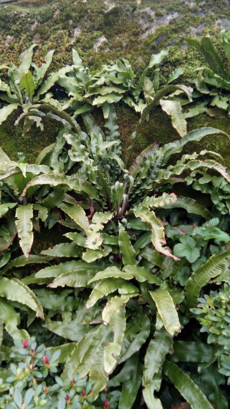 Die selbstangesiedelten Hirschzungenfarne in der Sandsteinmauer des obersten Gewächshauses wollen auch auffallen.