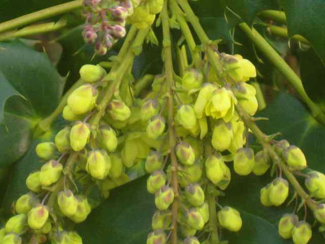 Die großblättrigen Mahonien beginnen jetzt bei mir zu blühen: