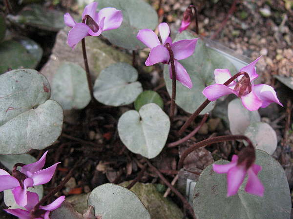 Ist ja gar nichts mehr von den Cyclamen zu sehen, wo doch jetzt so viele C.coum blühen.Deshalb von mir noch mal ein Bild:‚Picotee’ Silberblatt und rosa Büte mit feinem Rand