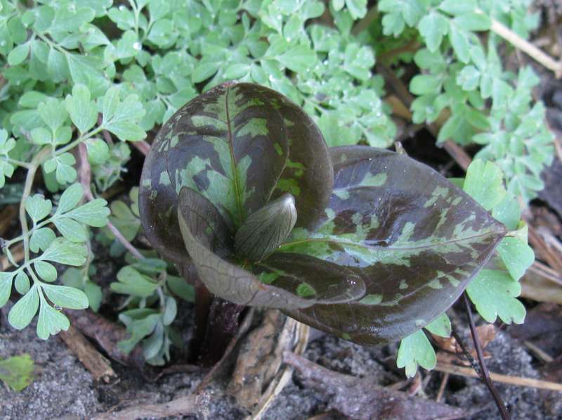 das war Trillium cernuum, das Nickende Trillium, dem das nachgesagt wird. Es treibt gerade aus.Genauso das Trillium sessile.Trillium kurabayashii ist hier genauso weit wie das Bild oben zeigt. Sehr schön, dass es einen Trieb zugelegt hat seit letztem Jahr.