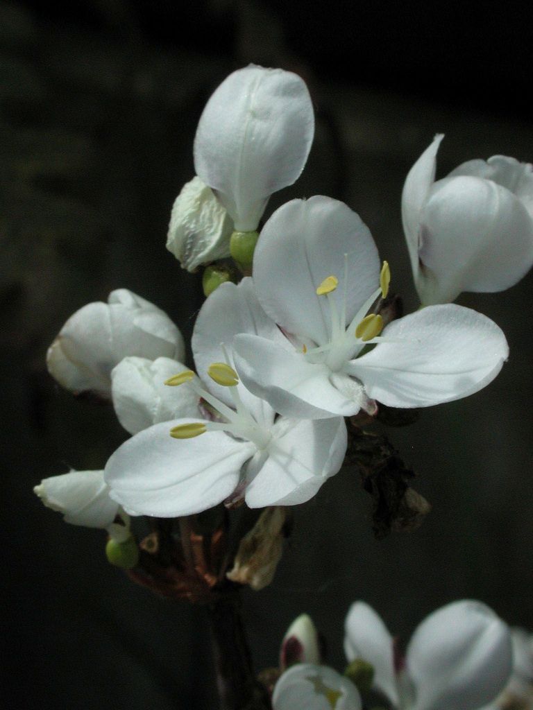 Guten Morgen,heute möchte ich mal zwei Pflanzen vorstellen, die eigentlich nicht als "kleine Zwiebelpflanzen" bezeichnet werden können. Es sind die größeren Rhizomverwandten einiger der hier bereits vorgestellten Zwiebelpflanzen. Beide gehören zur Familie der Iridaceae.Libertia formosa stammt aus Chile, ist mittlerweile aber auch in Kalifornien (unter dem poetischen Namen 'Snowy Mermaid') heimisch. Der Blütenstängel wird über einen Meter hoch, mit kleinen weißen, aber schönen Blüten, die ein wenig an die einer Commelinaceae erinnern.;)Ph.