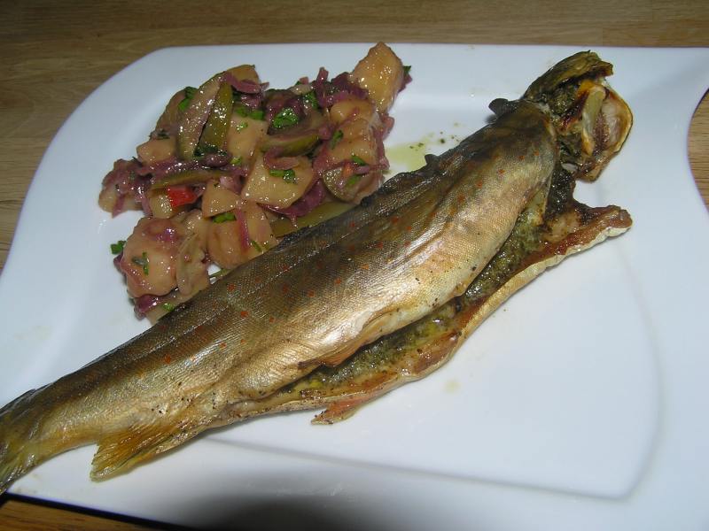 Heute gabs Grillfleisch mit Bratkartoffeln und Salat.