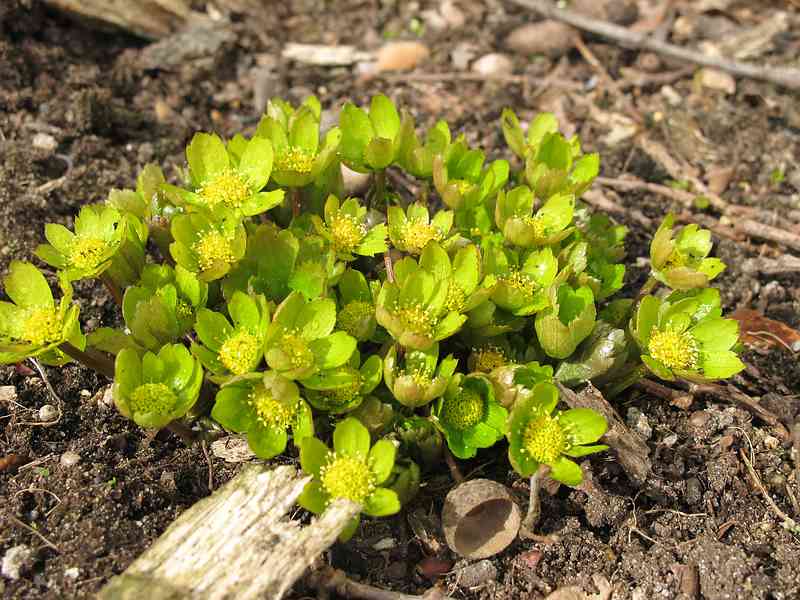 Hacquetia epipactis fangen zu blühen. Mittlerweile tauchen reichlich Sämlinge auf.