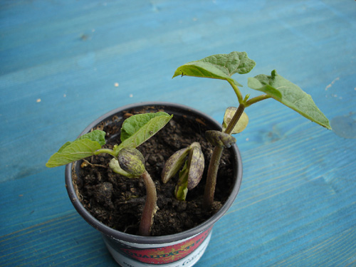 puh, keine ahnung, jedenfalls kann ich bestätigen, daß bei meinen stangenbohnen die keimblätter mit aus der erde kamen, also genau, wie im ersten bild.