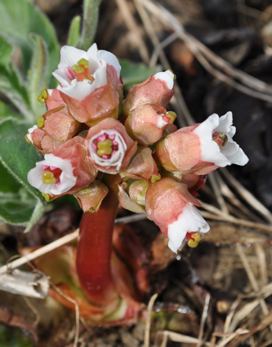 Aber schön!Diese schöne Bergenie mit ihren samtenen Blättern zeigt die ersten Blütchen: