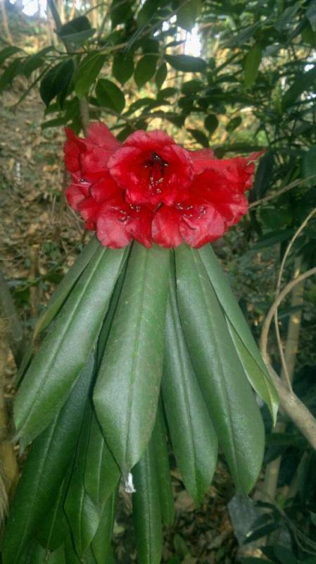 R.barbatum eine einzige Blüte bei ca.10 Pflanzen,die alle ca.18 Jahre alt sind.Die Wartezeit bei Species kann sehr lange sein.Blütenränder vom Frost beschädigt.