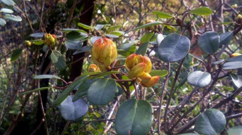 R.campylocarpum ssp.caloxanthum mit interessanten zweifarbigen Knospen,erblüht aber rein hellgelb