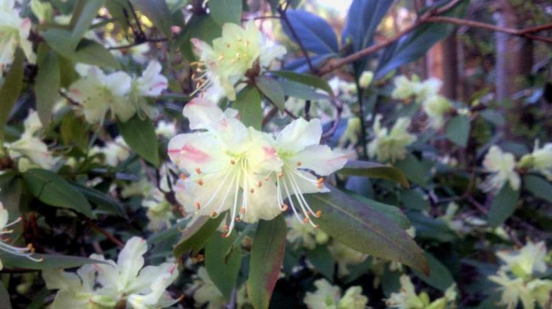 R.barbatum eine einzige Blüte bei ca.10 Pflanzen,die alle ca.18 Jahre alt sind.Die Wartezeit bei Species kann sehr lange sein.Blütenränder vom Frost beschädigt.