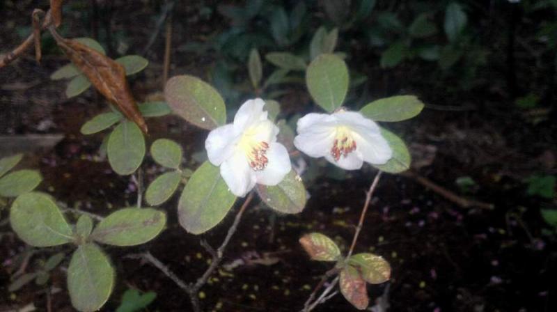 R.barbatum eine einzige Blüte bei ca.10 Pflanzen,die alle ca.18 Jahre alt sind.Die Wartezeit bei Species kann sehr lange sein.Blütenränder vom Frost beschädigt.