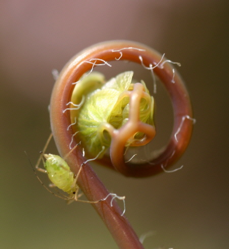 sie sind wieder da - die Heuschrecken! Dieses putzige Vieh mißt gerade mal 5 Milimeter (ohne Fühler) und beißt entsprechend winzige Löcher in frisch ausgetriebene Blätter ::)Liebe Grüße, Barbara