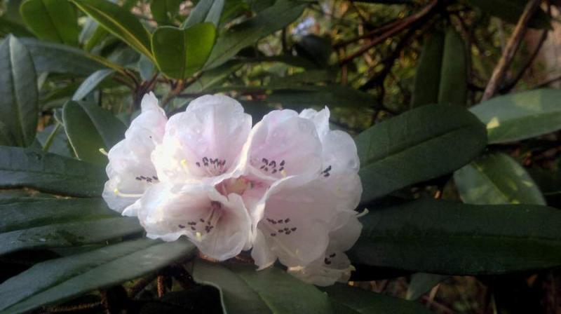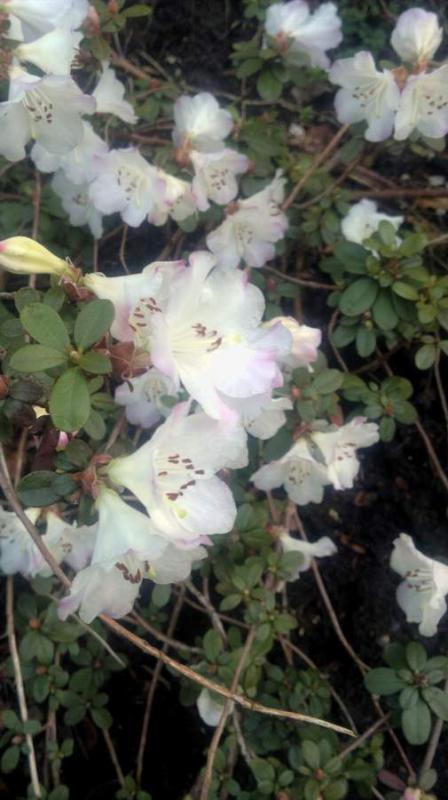 R.barbatum eine einzige Blüte bei ca.10 Pflanzen,die alle ca.18 Jahre alt sind.Die Wartezeit bei Species kann sehr lange sein.Blütenränder vom Frost beschädigt.
