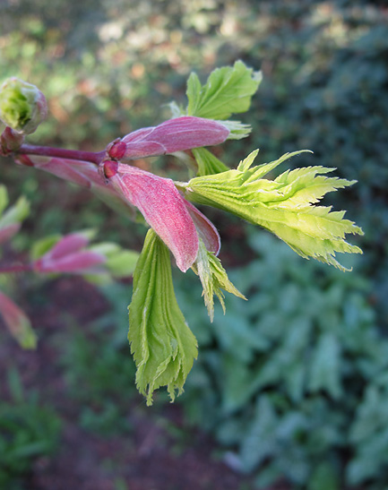 Ich habe auch einen selbst benamst: Acer pseudoplatanus 'Parkdirektor Dreisvogt'. Der frische Austrieb ist noch etwas rosa, was aber später verschwindet.