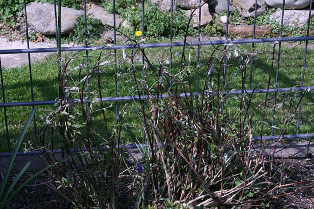 Hallo !Die Clematis treiben teilweise schon ganz schön stark. Die Cl.vit.Emilia Plater ist schon ganz weit.lg. elis