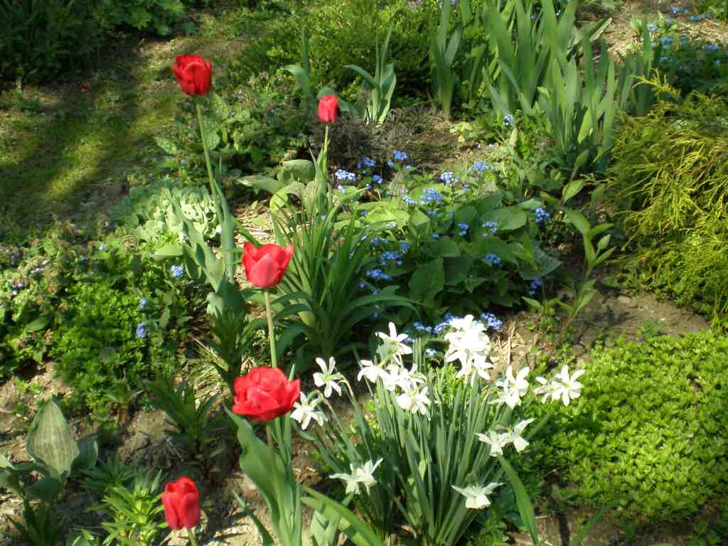 ich denke, es gibt überhaupt keine pflanzenrarität, die knorbs nicht in seinem garten hat.aus meinem garten etwas "einfaches". die tulpen haben für mein auge ein sehr schönes rot und weiß und blau sowie frischgrün mag ich im frühling besonders gern.
