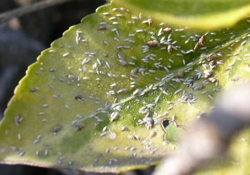 Hallo max!Ich hätte ja nicht gedacht, dass das mal passiert aber ich muss unserem Lahm recht geben.... für Thripse sind die Biester zu groß und zu zahlreich, abgesehen davon, dass sie die falsche Farbe haben. Thripse sind eher schwarz oder grau. Damit das Verhältnis von Schädlings- zu Blattgröße für den Thrips passt müsste es sich um Buchs oder sowas handeln (und selbst dann wären es Riesenthripse).Sieht tatsächlich nach Kommaschildläusen aus.Für die Bekämpfung bzw. Entsorgung bedeutet das, dass ich den gefällten Baum eher dem Recyclinghof zuführen würde (Heißrotte) oder ihn stumpf verbrennen würde.Falls die Tierchen noch an anderen Pflanzen auftreten hilft bei hartlaubigen Pflanzen (oder nach Laubfall) ein Ölspritzmittel auf Raps- oder Mineralölbasis (Gesamte Pflanze von oben bis unten lückenlos einnebeln) oder auch, bei allen (Zier-)Pflanzen, ein Neonicotinoid wie Imidacloprid (Provado), Thiacloprid (Calypso [zusätzlich hoher Ölanteil]), Acetamiprid (Careo) oder Thamethoxam (Axoris). Besonders gut gegen Schildläuse (und Wolläuse) wirken nach meiner Erfahrung Imidacloprid und Thiamethoxam, aber auch Acetamiprid ist nicht schlecht. Beim Thiacloprid habe ich den Verdacht, dass der Ölanteil in der Formulierung wesentlich mehr bewirkt als das Thiacloprid...Wichtig bei Neonicotinoiden:Einige sind bienengefährlich (z.B. Imidacloprid), andere haben keine Zulassung im Freiland. Daher ist eine Beratung beim Kauf wichtig!Weiterhin müssen diese Mittel mindestens dreimal im Abstand von etwa 10 Tagen angewendet werden.Und zum Schluss noch der Hinweis, dass die toten Schildläuse nicht von den Pflanzen abfallen. Um zu sehen ob das Mittel gewirkt hat hilft also nur ankratzen. Lassen sich die Tiere ohne jeden Widerstand von der pflanze entfernen sind sie tot außerdem sind sie nach etwa -2 Wochen vertrocknet, schmieren also beim zerreiben zwischen den Fingern nich mehr.Liebe Grüße,Daniel