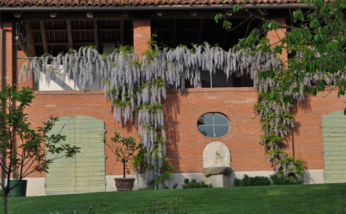 Feletig, Arignano, ein sehr nettes Ehepaar, dass uns bestens beraten und uns herumgeführt hat.Sonst klimatisch etwas kühler, als der Rest wo wir noch waren, es blühten ausser diesen Rosen an der Hauswand noch kaum eine.Sie führen mehrheitlich alte Rosen und Wildrosen.Hier sprang uns diese Banksiae lutea beim Eingang vor dem schönen Hintergrund beim Besuchs dieser Rosengärtnerei ins Auge: