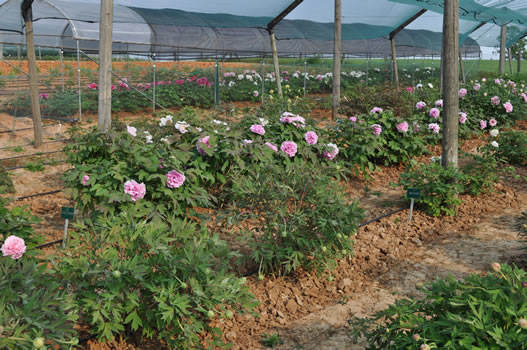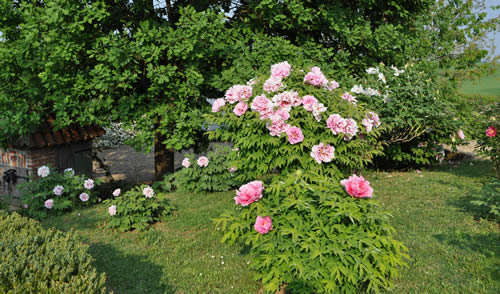 Weiter mit PfingstrosenMit dem grünen Hintergrund kommen die blühenden Sträucher sehr gut zur Geltung.