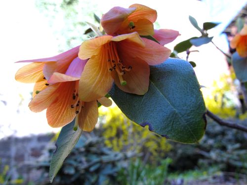 Rhododendron fortunei (es soll sich um den Klon "Houlstonii" handeln) blüht auch viel zu früh. Leider kommt bei diesem Frühjahr alles zu schnell und fast gleichzeitig.