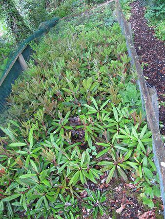 Hier der Nachwuchs: Diverse Sämlinge von Rh. pachysanthum, fortunei, makinoi, yakushimanum (heißt inzwischen anders), williamsianum ua. Da ich nicht mit der Hand polliniere, sind alle Zufallssämlinge, von denen einige zwangsläufig "echt" fallen, da sie alleine blühen.
