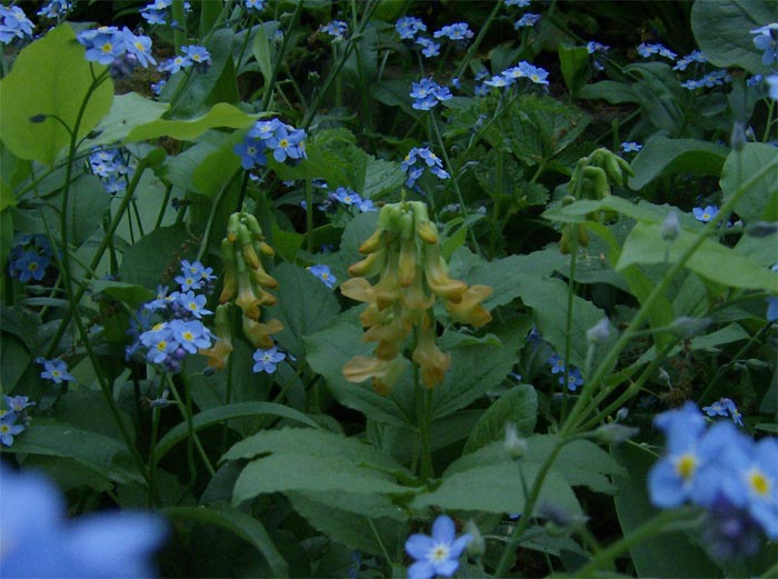 Sehr schön, Dein Lathyrus aureus. Kann man die durch die Samen vermehren?Lathyrus aureus inmitten von Wald-Vergißmeinicht.