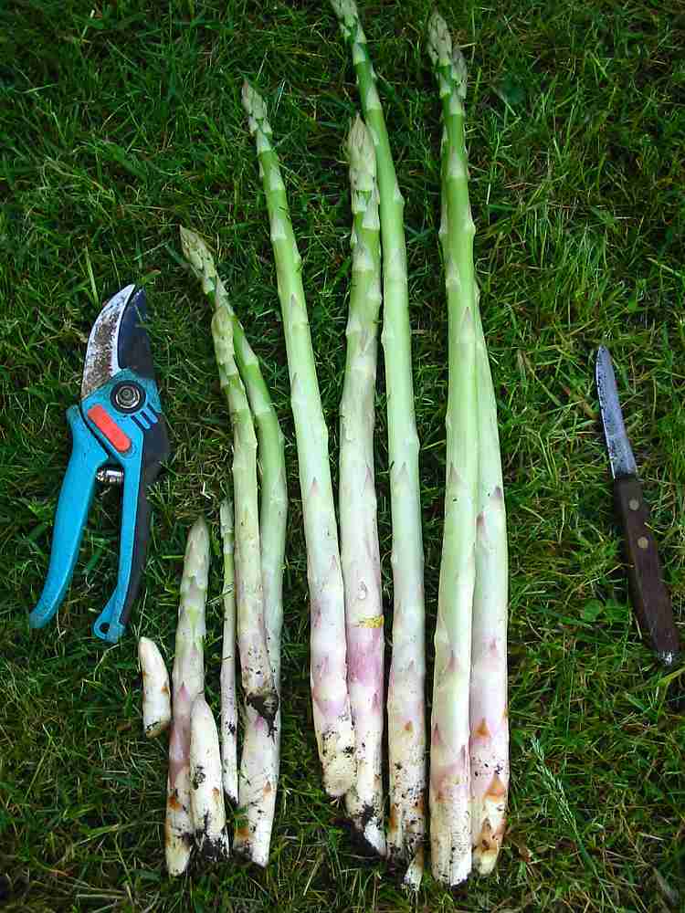 Vorne rechts ist Salatrauke, die rotgeäderten länglichen Blätter ist Blutampfer.Ich hab meine einzige Spargelernte als Bild wiedergefunden, ich bin echt traurig, das nur einmal geerntet zu haben