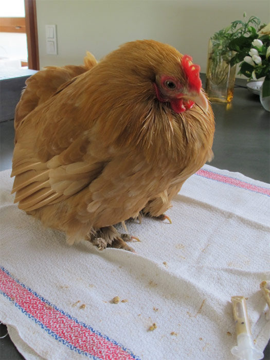 Ja, Greta guckt noch schlapp und sieht geschwächt aus.Aber heute hat sie ein Korn gepickt.