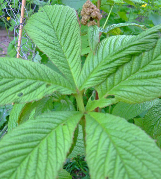 Danke für den Hinweis!Wenn ich mal so forsche, dann erscheint mir fast, als hätte da die Rodgersia henricii mit gemacht und meine ist eine Hybride? Zumindest scheinen deren Blätter ja recht typisch diese Verzweigung aufzuweisen.