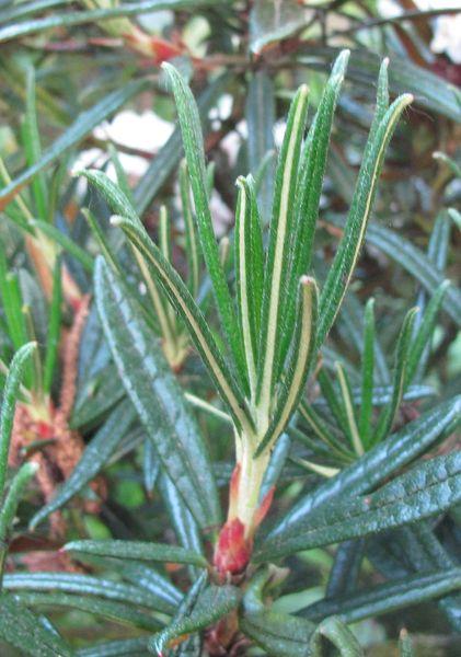 Der zu erwartenden Frostnacht wird vermutlich auch der nadelartige Neuaustrieb von Rhododendron roxieanum zum Opfer fallen...
