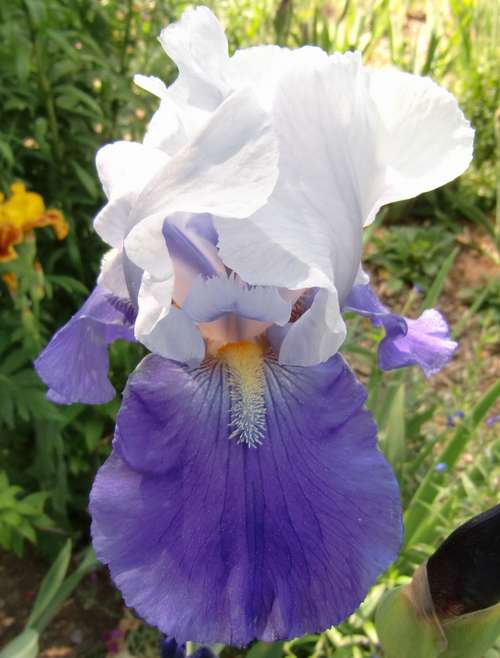 Diese Irisblüte tauchte heute bei mir auf. Es ist mir völlig schleierhaft woher sie kommt, und vor allem, was sie zwischen der Brazilian Holidays macht (paßt überhaupt nicht