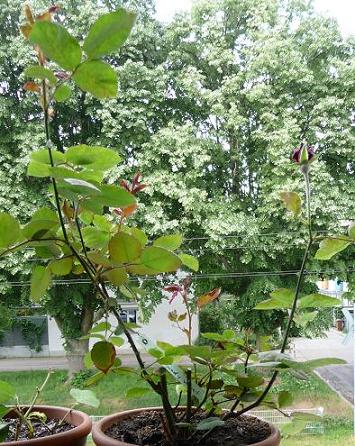 Schön, daß sie heil angekommen sind.Sie sind zwar an Sonnenlicht gewöhnt, aber jetzt waren sie ja 4 Tage im Dunkeln. Deshalb kannst Du sie ruhig erstmal in den Schatten stellen. Aber Du kannst Sie im Grunde dann hinpflanzen, wo Du möchtest...ich verstehe nicht ganz, was Du mit der Mamy Blue im Hinblick auf den Stambaum sagen möchtest. Die Mamy blue hat ganz normale Vorfahren, die haben halt nur in der Elterngeneration keine Namen, sogar in einer Großelternlinie keine Namen...Ich züchte aber ganz kurzsichtig, ich bin ungeduldig und möchte jetzt erstmal noch meine apricot/orange-lila-Reihe weiterführen. Denn die Julia's Rose z.B., deren Farbe ich toll finde, hat als Eltern Blue Moon × Dr. A.J. Verhage. Und Vidal Sassoon/Old Spice hat als Eltern Harmonie × Big Purple.