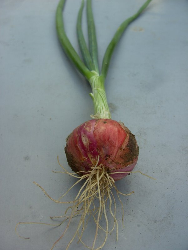heute die ersten herbstzwiebeln. sorte war "red comrade"