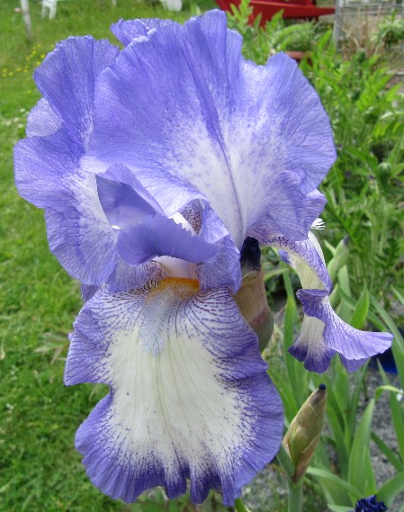 Eine recht alte Sorte, vermutlich Iris "Neglecta", registriert 1813, von Horne, wenn man Davesgarden glauben schnenken kann.Ich habe auch so eine. Blüht spät, immer üppig, selbst mitten im Gras. Hattest Du sie eventuell von mir?Bei dieser ist das Namensschild völlig verblasst. Sie hat jetzt angefangen zu blühen, ist aber von der Statur eher eine Media.