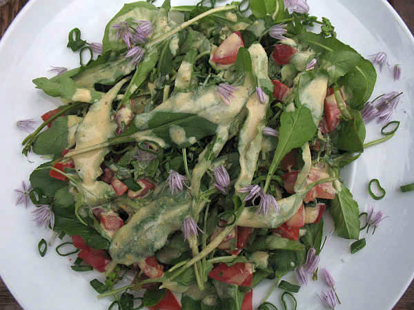 Heute gab es erst Glockenblumensalat mit wilden und mit Gartenkräutern...