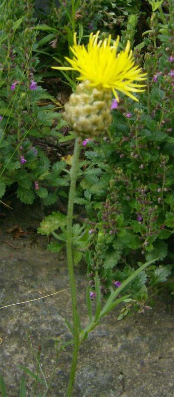 Noch eine Gelbe - von einer Gartenfreundin letztes Jahr bekommen: Centaurea orientalis; blüht gerade im sonnigen Steingarten (leider etwas unscharf