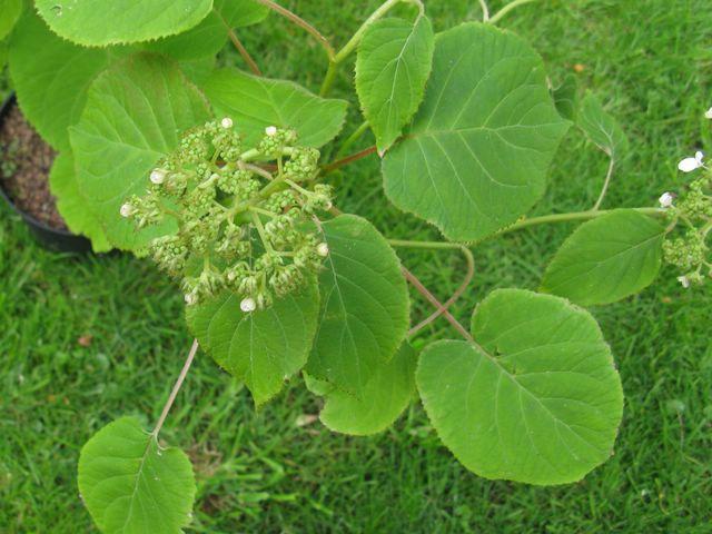 bin gespannt auf die unterschiedlichen Blüten! Cor van Gelderen hat Bilder von Hydrangea aspera subsp. robusta var. longipes gezeigt. Mit der süffisanten Bemerkung, dass sie nichts von alledem sei. Genauer, nichts von all den Eigenschaften habe. Eher eine kleine Pflanze mit schmalen kleinen Blättern.
