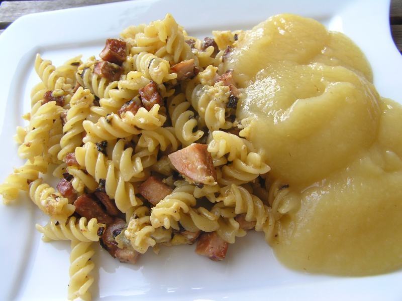 fleischkäsnudeln mit apfelbrei