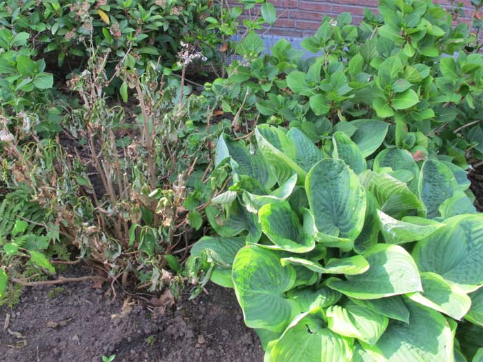 das sieht bedenklich aus. Ausbuddeln, topfen und beobachten. Oder gleich kompostieren. Die Kombination mit der Hosta daneben und der Bauernhortensie dahinter war sowieso zu eng.Schaut selbst!![]()