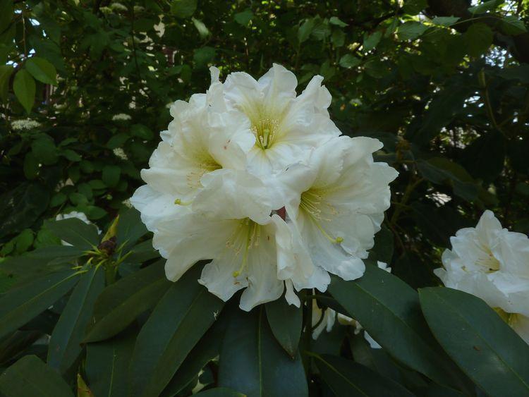 Trotz Sommerhitze halten die Blüten recht lange: Rhododendron decorum.Abends verströmt er einen wunderbaren Duft.