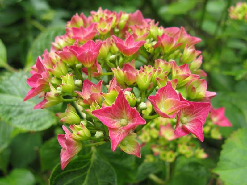 Wenn ich nicht einen großen Teil meiner H. macrophylla im keller überwintern würde, gäbe es von mir auch nicht viel Farbiges zu zeigen.H. macrophylla 'Oregon Pride', eine amerikanische Sorte mit schwarzen Blütenstielen.