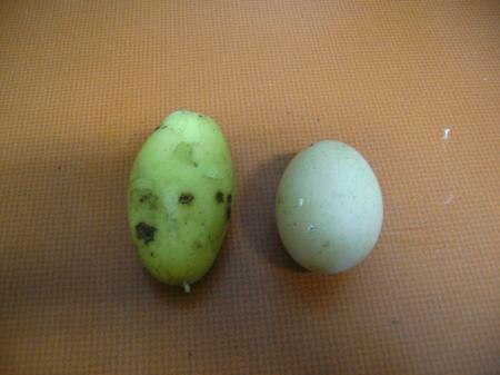 Das Vergleichsei ist etwas schwerer, obwohl die meisten unserer Eier auch relativ klein sind. Und die Bilder sind unscharf, muß mal noch bessere machen.