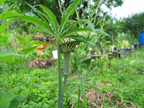 dürfte ein Arisaema ciliatum sein oder evtl. ein consanguineum. jetzt ca. 50-60 cm hoch. die ersten fangen gerade zu blühen an. aber ihre hoch-zeit kommt erst noch.