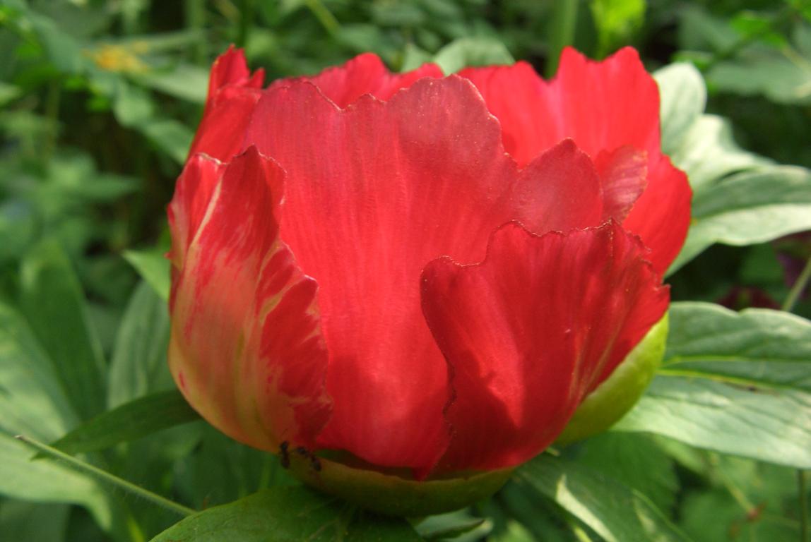 Eine noch ganz junge Pfingstrose, blüht trotzdem schon