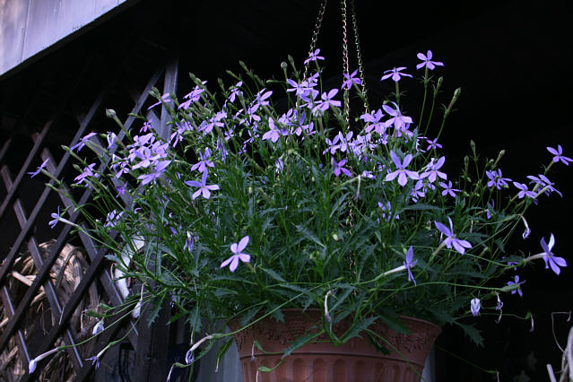 das ist isotoma.Eine Ampelpflanze, Name unbekannt, aber blau