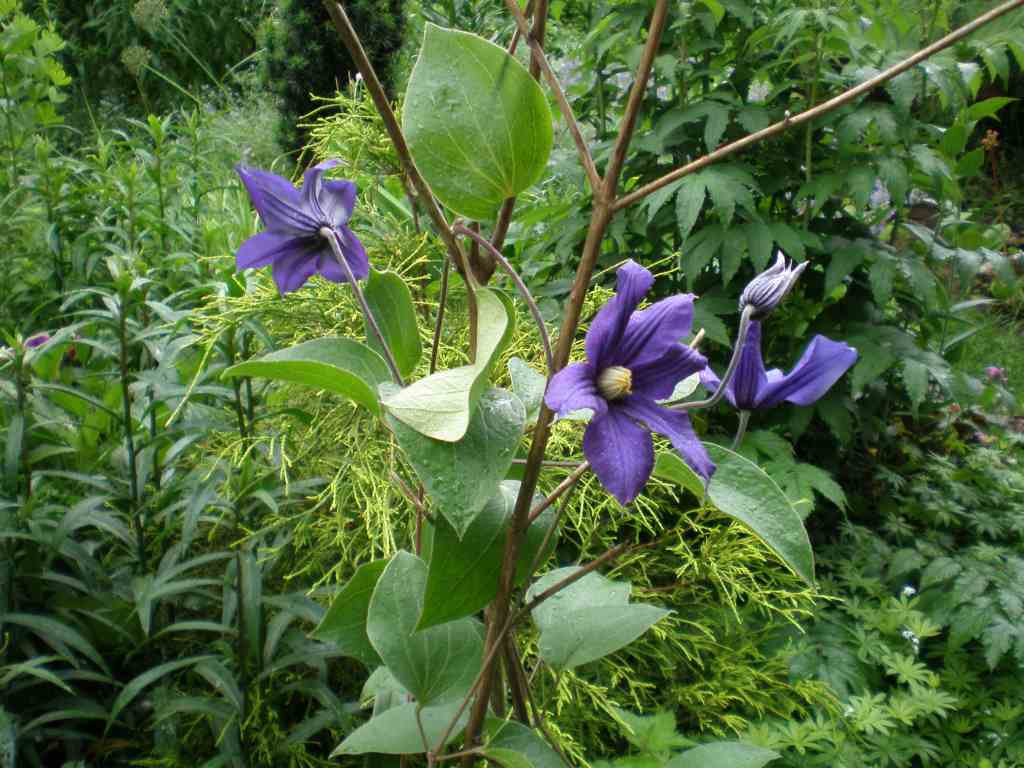 Links am Steher (nicht mehr auf dem Bild) ist die Clematis eriostemon Hendersonii, dann die Mme Isaac Pereire
