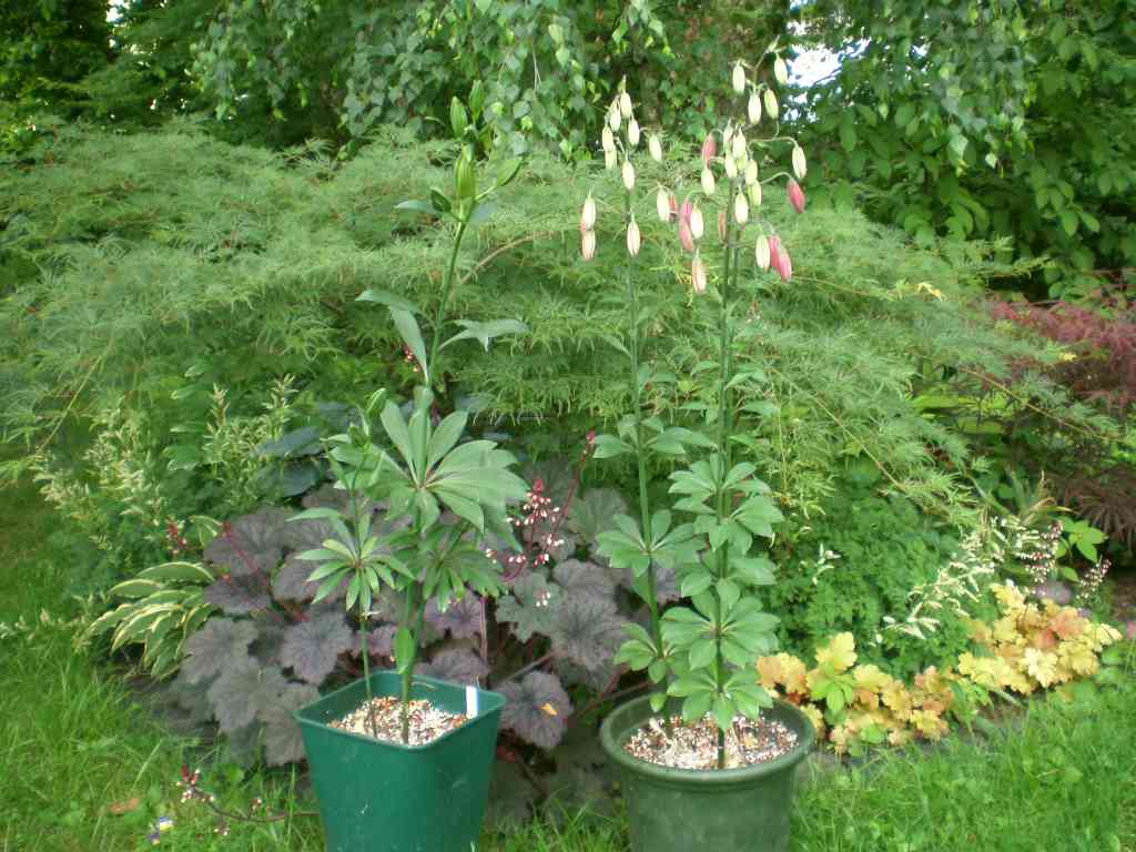 Ja, ein paar Töpfchen finden sich noch, aber nicht alle Lilien werden blühen. Schade!Bei diesen Töpfen sieht es vielversprechend aus:links L. tsingtauense, rechts L. "Claude Shride"