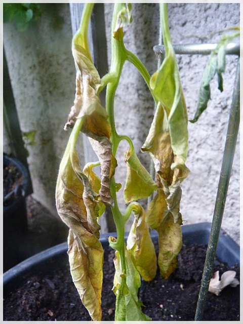 eine meiner tomaten-pflanzen geht ein. seit mehreren tagen ist sie wie welk. jetzt faerben sich die blaetter gelb. und sie geht ein.alle anderen sorten im umfeld sehen gesund aus. nur diese eine pflanze hat die symptome.diese passen nicht so recht in ein krankheits-bild, dass ich kenne.kann mir jemand helfen? weiss jemand anhand der fotos, was meine de berao matthias auslese haben koennet.