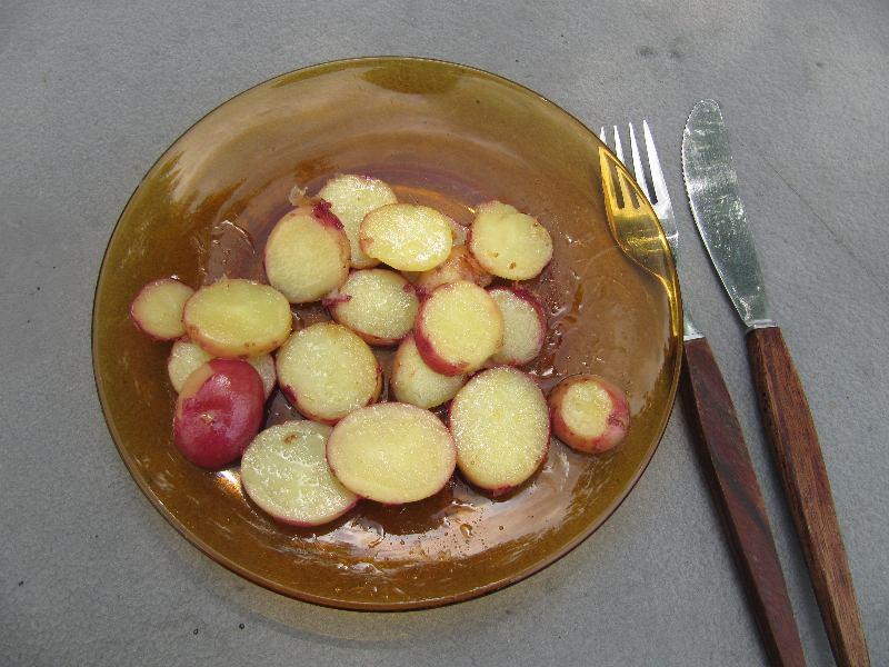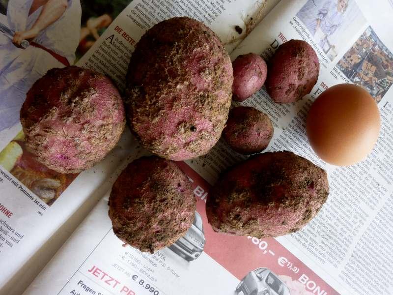 Jaja, aber es hat gedauert. Außerdem sind sie schorfig. Die anderen lasse ich aber noch in der Erde. Das Kraut steht üppig und grün, da gibt es keinen Grund, sie jetzt schon rauszuholen (außer Appetit auf frische Kartoffeln).