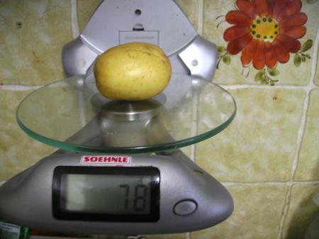 Immerhin habe sie eine Knolle heil gelassen. Sie wiegt genau 100g und ist etwas größer als ein Hühnerei: