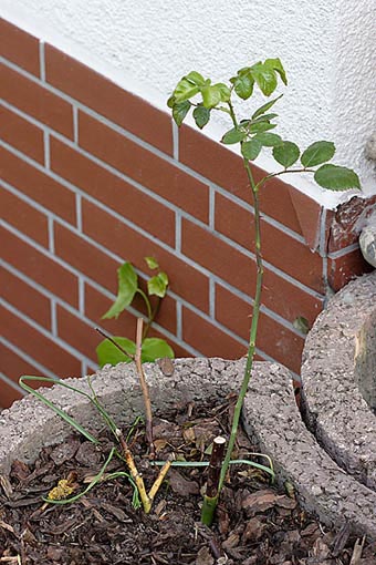 Es gibt durchaus Mittel gegen Pilzerkrankungen an Rosen. In diesem Fall wäre ein kupferhaltiges Mittel angesagt. Aber Obacht: tödlich für Regenwürmer! Ich schrecke daher vor sowas auch immer zurück und habe es auch noch nie benutzt. Meist hat Schnitt gereicht. In diesem einen Fall bereue ich es aber, die Stellen nicht wenigstens eingepinselt zu haben, wobei ich nicht weiß, ob das reicht. Aber einen Versuch wäre es vielleicht wert gewesen. Denn wenn die Rose jetzt eingeht, kann ich erstmal wieder keine hinpflanzen, obwohl sie auf der kahlen Wand wirklich gut aussieht. Oder ich muss die ganze Erde austauschen.