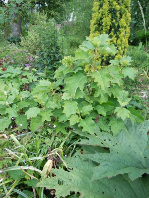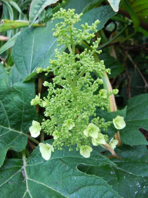 Hydrangea quercifolia "Snow Queen". Vom kleinen Steckling bis heute waren es bestimmt 5 Jahre. Sie hatte noch nie Frostschäden und ist an einem Nordwesthang halbschattig gepflanzt.